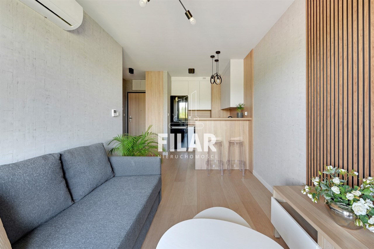 A spacious, two-room apartment located on the second floor of the building. The apartment is new, put into use, has not been previously inhabited, has air conditioning. The premises are very bright and easy to arrange, the windows are east of the window. The living area with direct access to the balcony has been connected with a functional built-in annex. In the bathroom, a shower with a rain shower, a washbasin and a toilet, stylish tiles add to the charm. The living room and bedroom will be furnished. There is no TV or washing machine in the apartment.