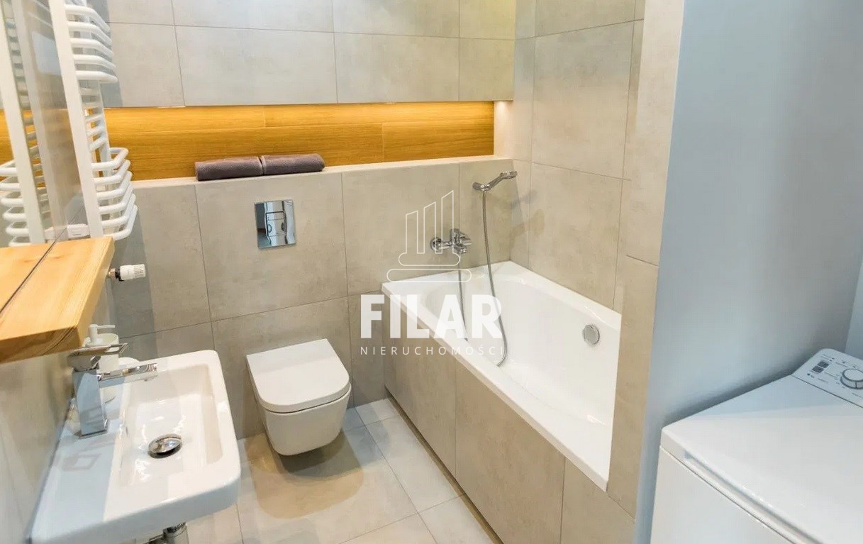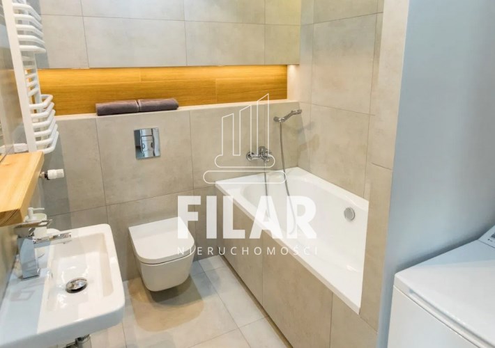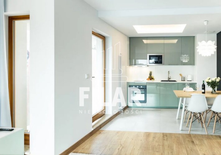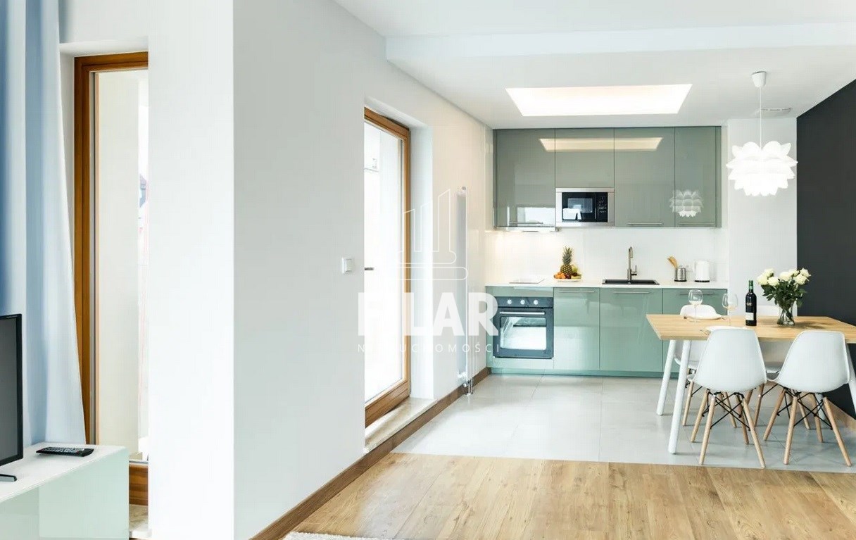 The apartment is furnished, bright and consists of a room with kitchenette, bedroom, bathroom with toilet, bath and shower and hallway in area of 53,50 m2. It is fully furnished and finished to a high standard.