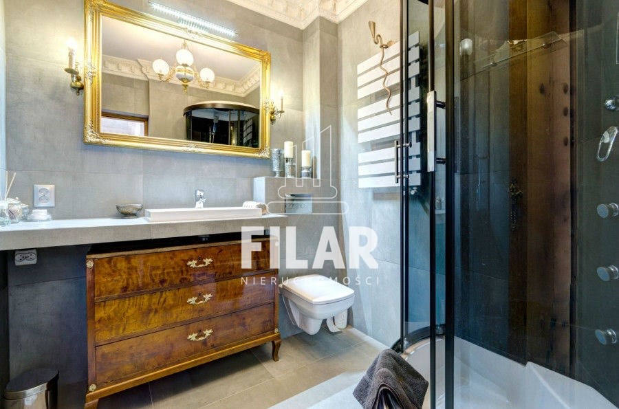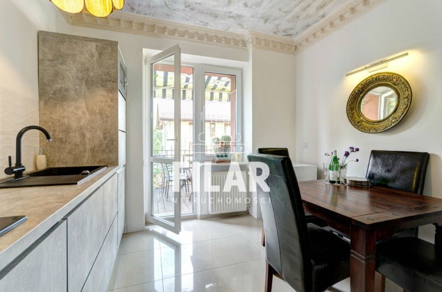 The apartment is located on the first floor of a tenement house, the great advantage is that only this apartment is located there, which ensures great privacy. The property is finished to a high standard. Exceptional door woodwork, with tops, noble materials, subdued colors. The area of 90 m2 consists of two bedrooms, a dressing room, a spacious living room, a bathroom with a hydromassage cabin and a kitchen with direct access to the terrace and all household appliances. The apartment is equipped with internet and cable TV. It is possible to leave the furniture or take it. The property is ideal for various types of activities, such as an office, an aesthetic medicine office or an office.