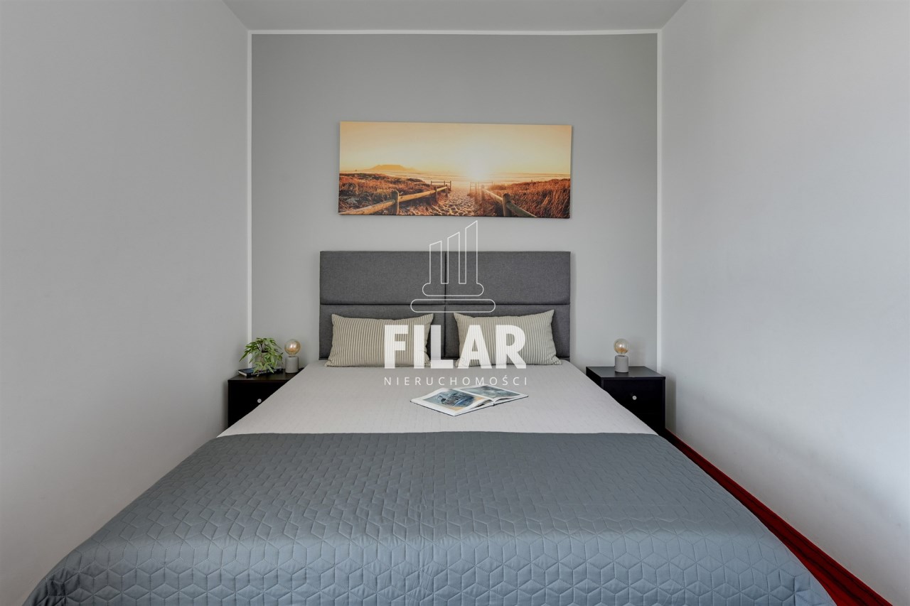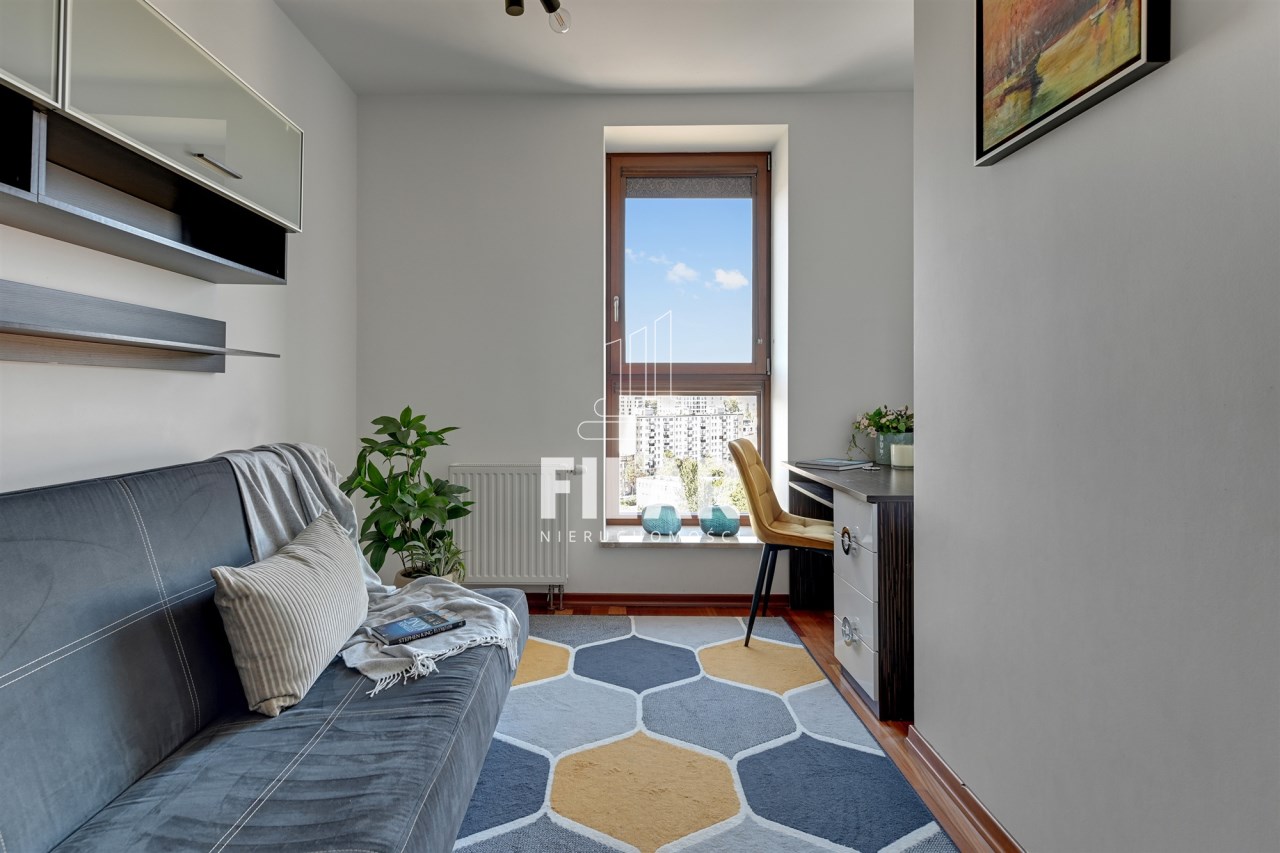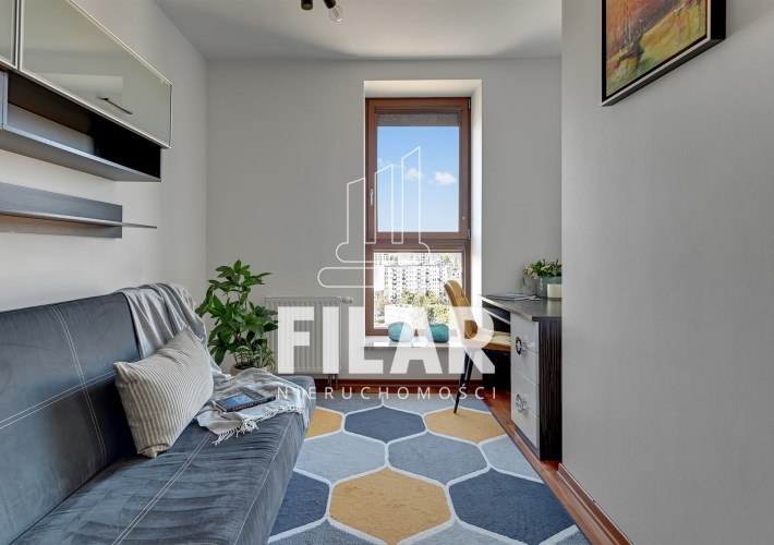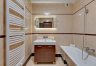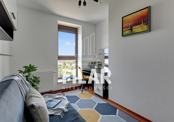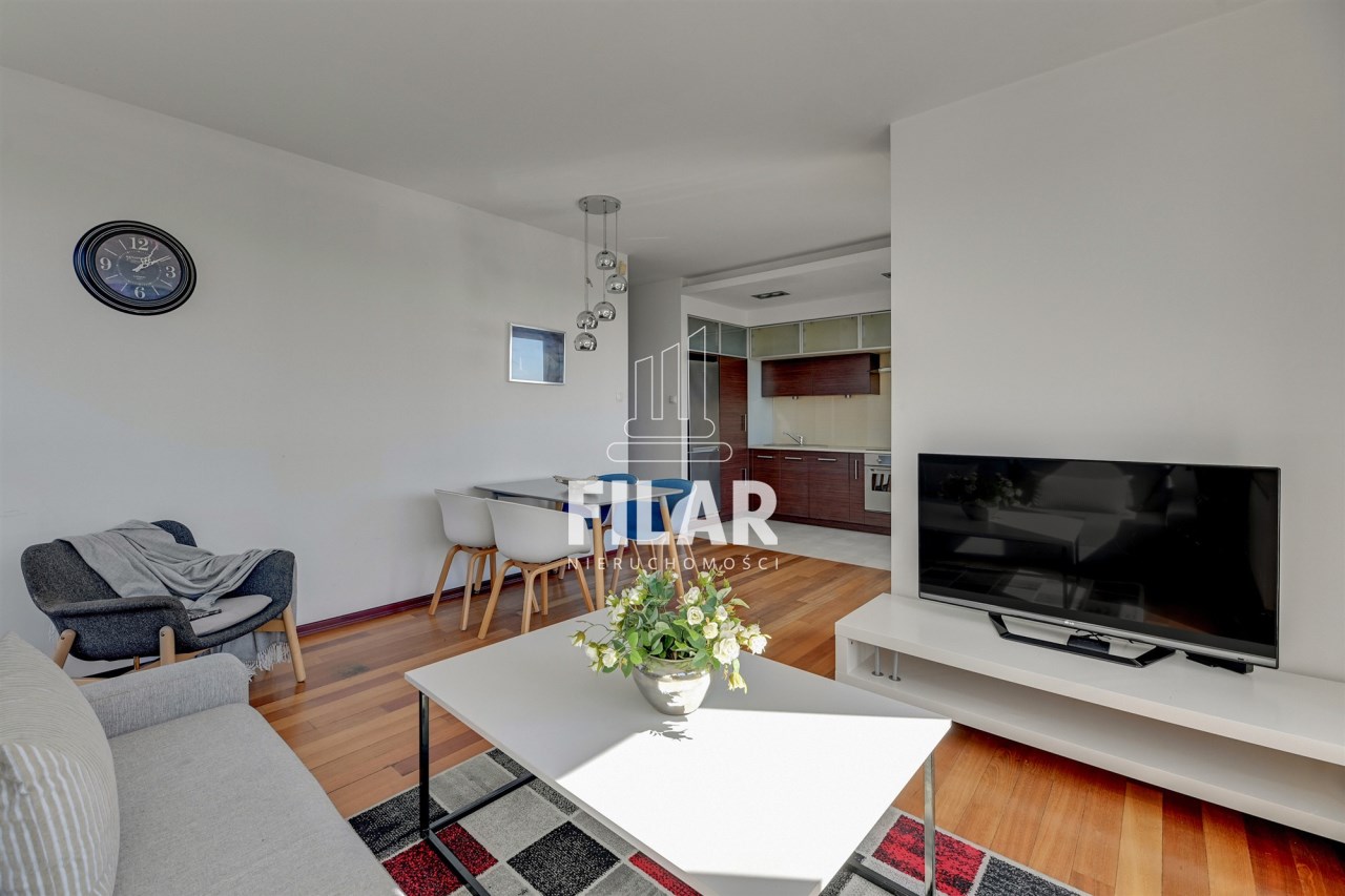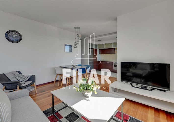 A three-room apartment located on the 12th floor with a view of the city and the port. The apartment comprises a living room with a kitchenette, two bedrooms, a bathroom and a toilet. The living room is connected with the dining room and kitchen. The main bedroom has a double bed and a TV, while the second bedroom has a fold-out sofa, built-in wardrobe and a place to work. The bathroom has a bathtub and a washing machine. The apartment is fully equipped with all necessary appliances.