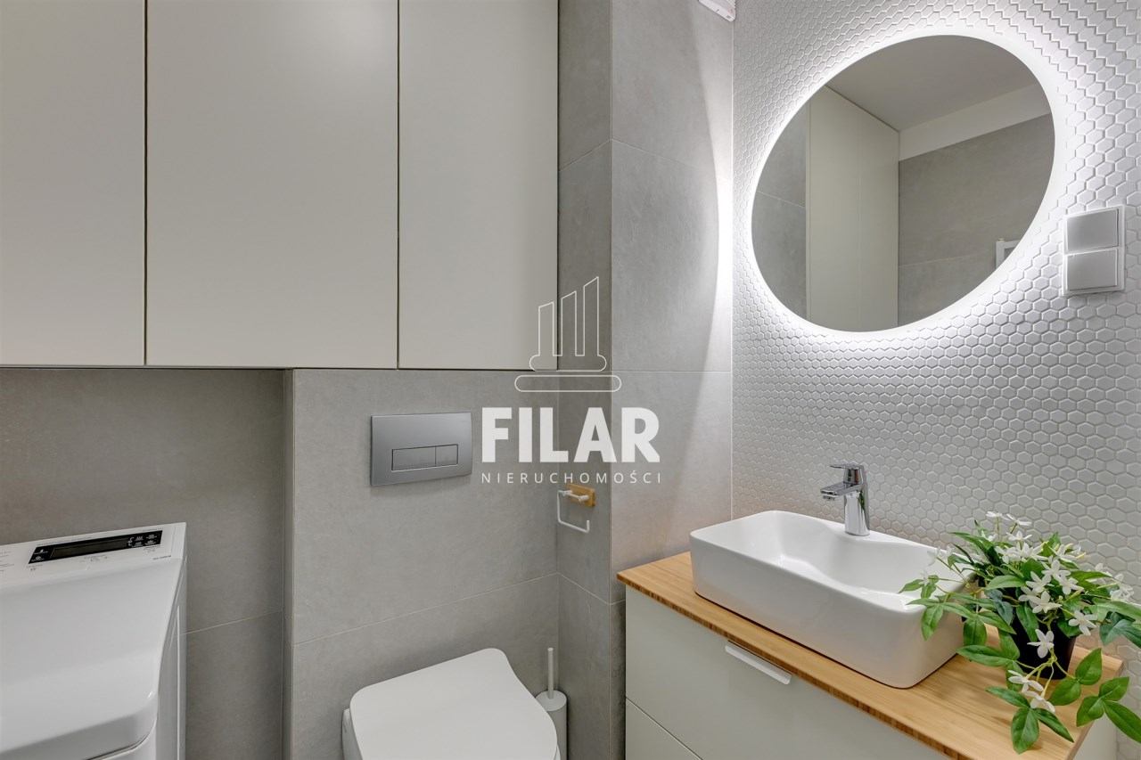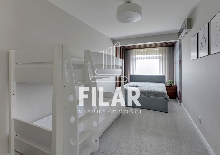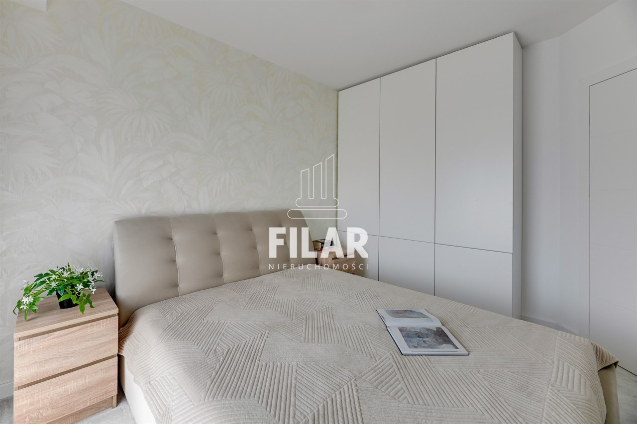 Nieruchomość o powierzchni 66,6 m², usytuowane na 2. piętrze w reprezentacyjnym budynku. Lokal składa się z salonu z aneksem kuchennym, dwóch sypialni, łazienki, garderoby oraz balkonu z wejściem z salonu. Wnętrza utrzymane są w eleganckiej, nowoczesnej stylistyce, z dominacją odcieni szarości i beżu, które nadają przestrzeni stonowanego, harmonijnego charakteru. W salonie znajduje się duża, wygodna rogówka, telewizor oraz stół jadalniany. Aneks kuchenny w białej zabudowie jest w pełni wyposażony w niezbędne sprzęty AGD. W obu sypialniach ustawiono komfortowe łóżka z tapicerowanymi zagłówkami, w głównej funkcjonuje także wiszący telewizor. Z przedpokojem sąsiaduje niezwykle praktyczna, pojemna garderoba. Łazienka w szarej, schludnej tonacji wyposażona jest w kabinę prysznicową i pralkę. Całe mieszkanie przeszło generalny remont w 2023 roku i nie było eksploatowane, przez co jest w stanie idealnym. Dodatkowo zabezpieczają je zewnętrzne żaluzje antywłamaniowe. To propozycja dla osób ceniących nowoczesne, schludne i gotowe do wprowadzenia wnętrza.