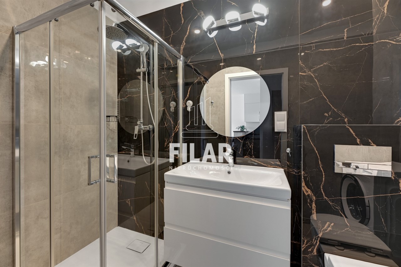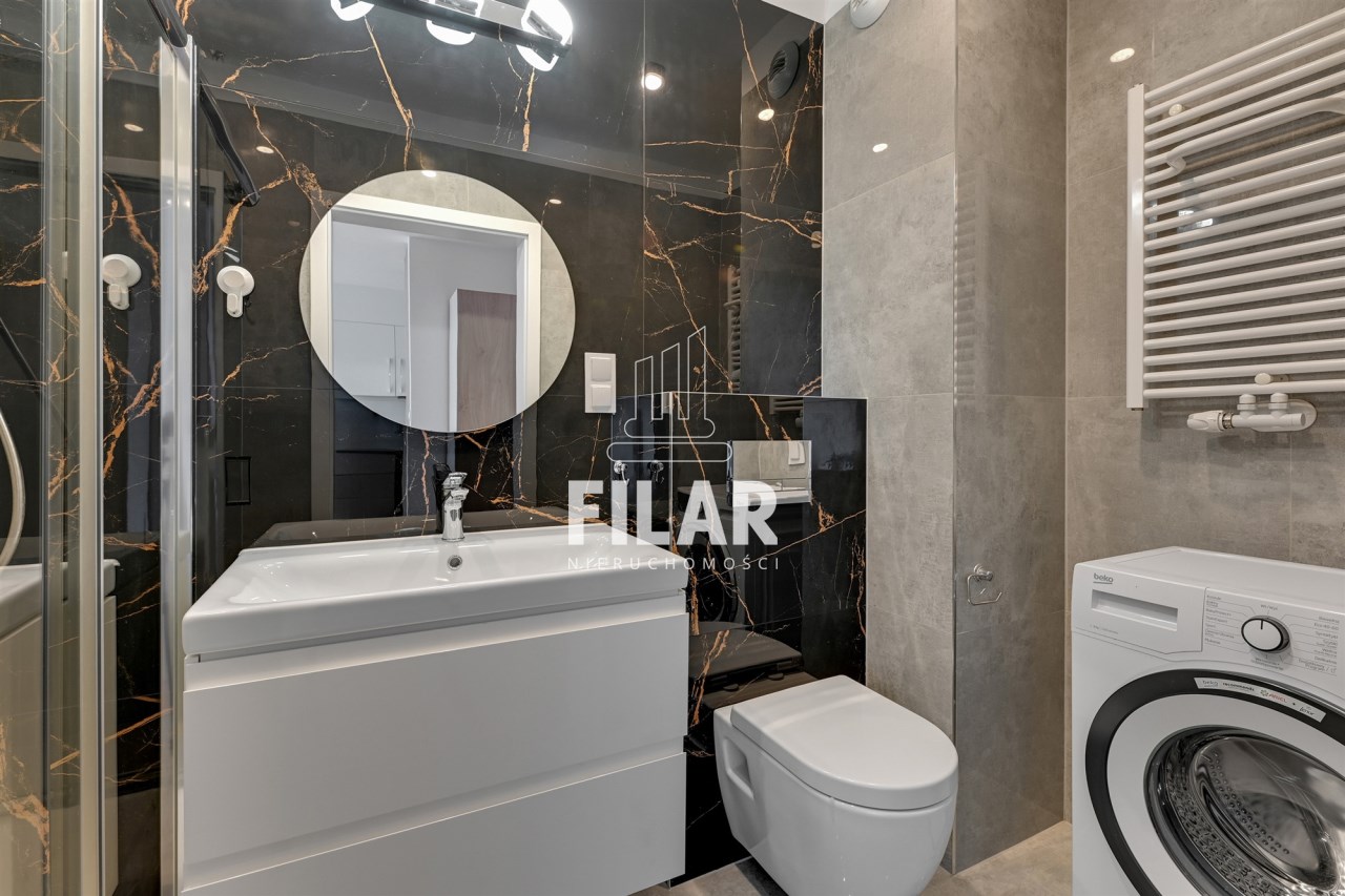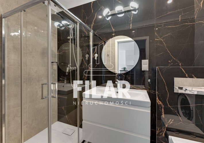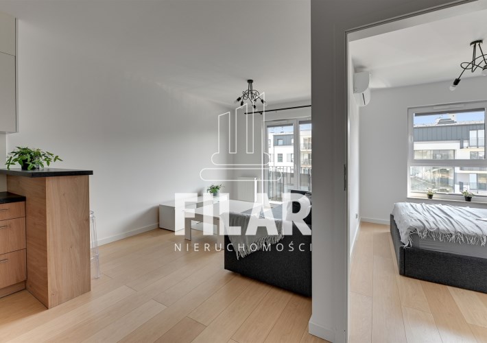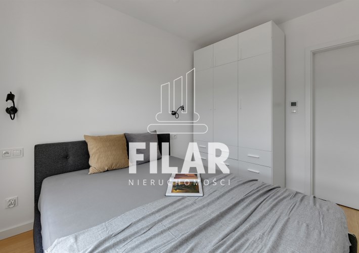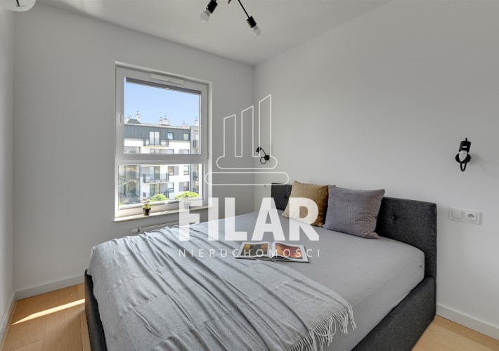 Przestronne, dwupokojowe mieszkanie znajdujące się na drugim piętrze budynku. Lokal jest nowy, oddany do użytku, nie był wcześniej zamieszkały, posiada klimatyzację. Pomieszczenia są bardzo jasne i ustawne, wystawa okien wschodnia. Część dzienna z bezpośrednim wyjściem na balkon połączona została aneksem w zabudowie. W salonie stolik kawowy, stylowa sofa i szafka RTV. Strefa kuchenna wyposażona w niezbędny sprzęt AGD, bardzo funkcjonalna, dużo miejsca do przechowywania i blatu roboczego. Sypialnia wyposażona w łózko dwuosobowe oraz pojemną szafę. W łazience prysznic z deszczownicą, umywalka oraz WC, uroku dodają stylowe kafle. Mieszkanie jest gotowe do wprowadzenia, przestronne i przytulne.