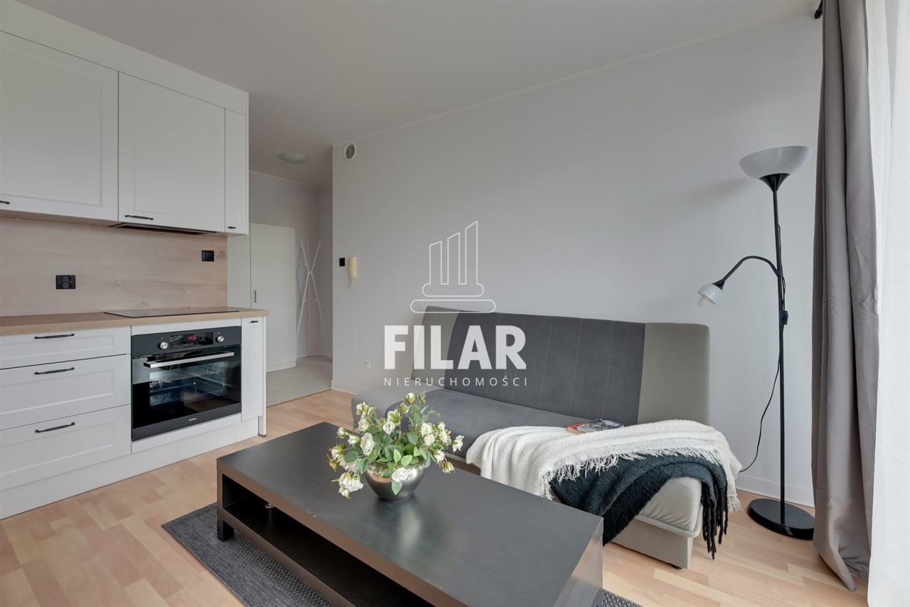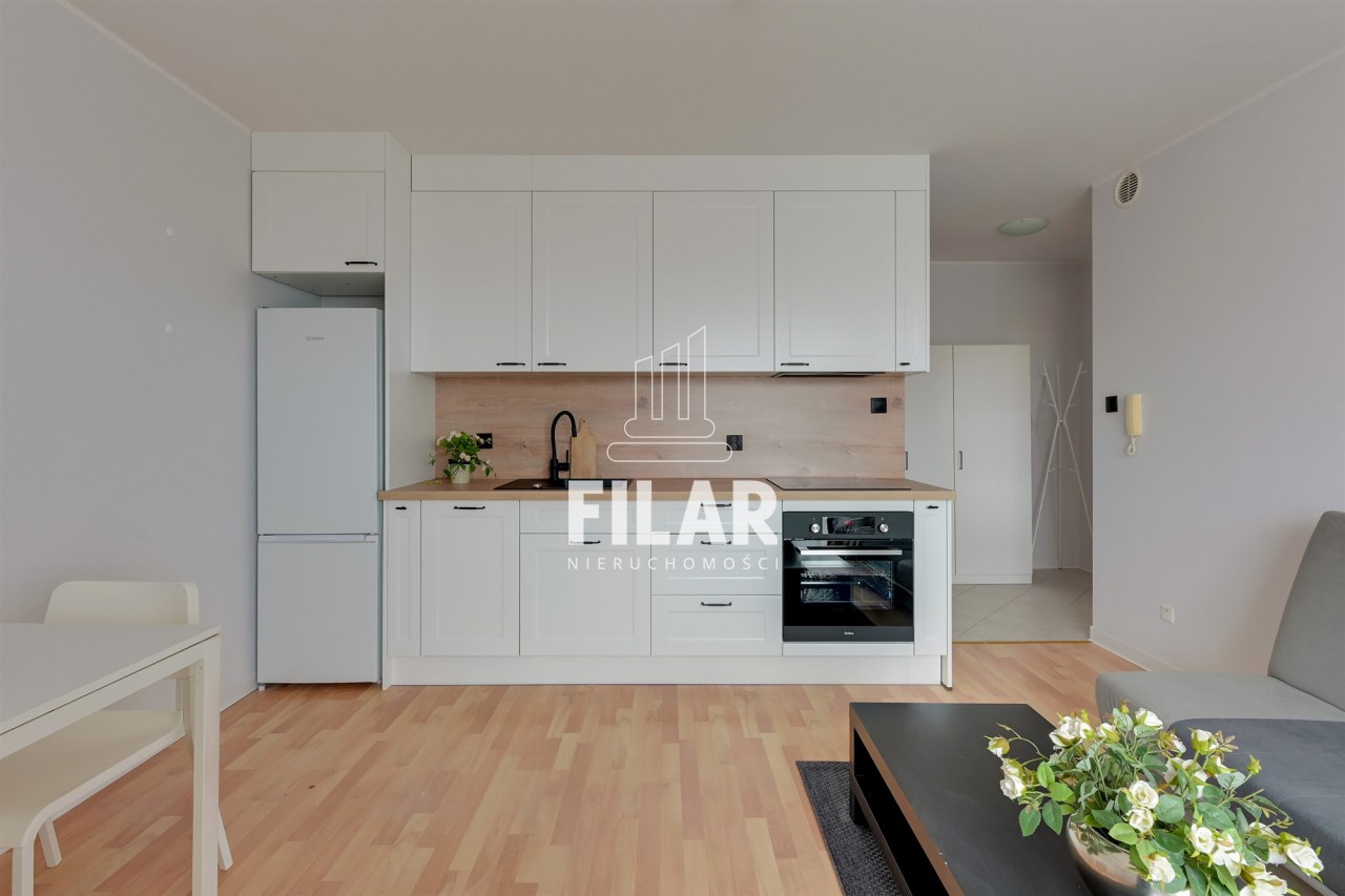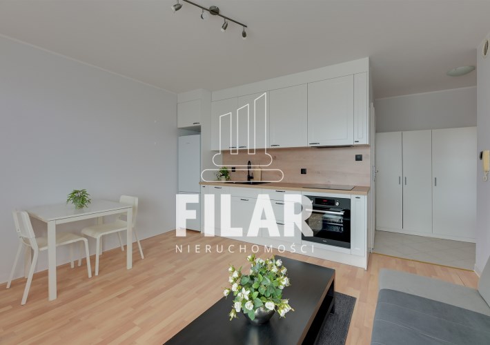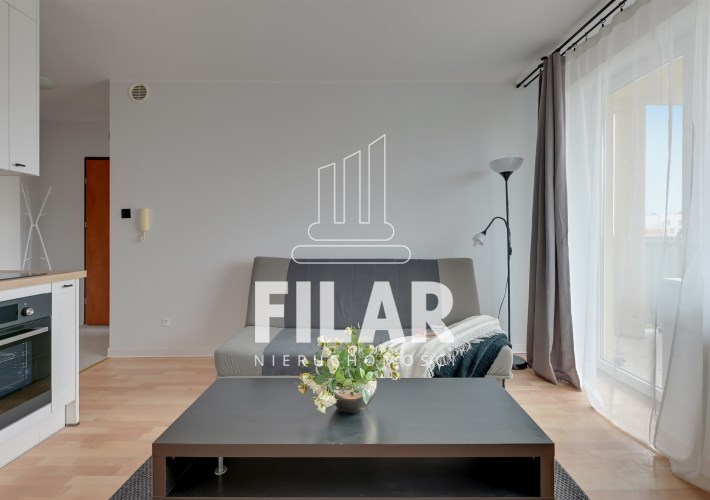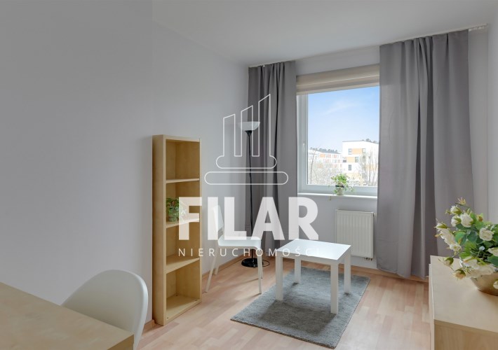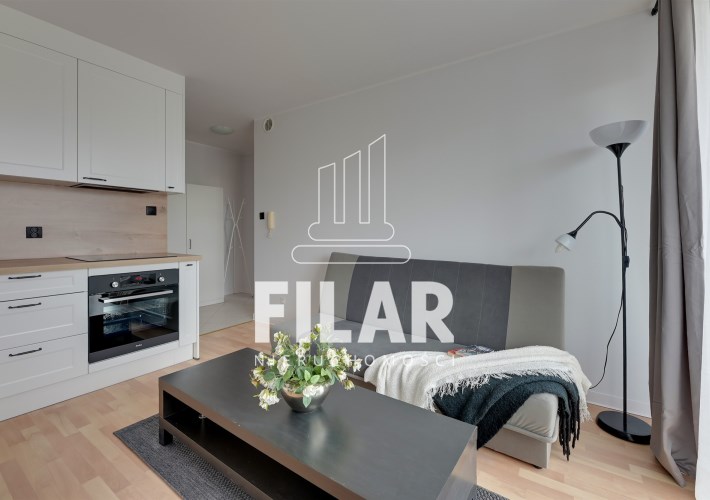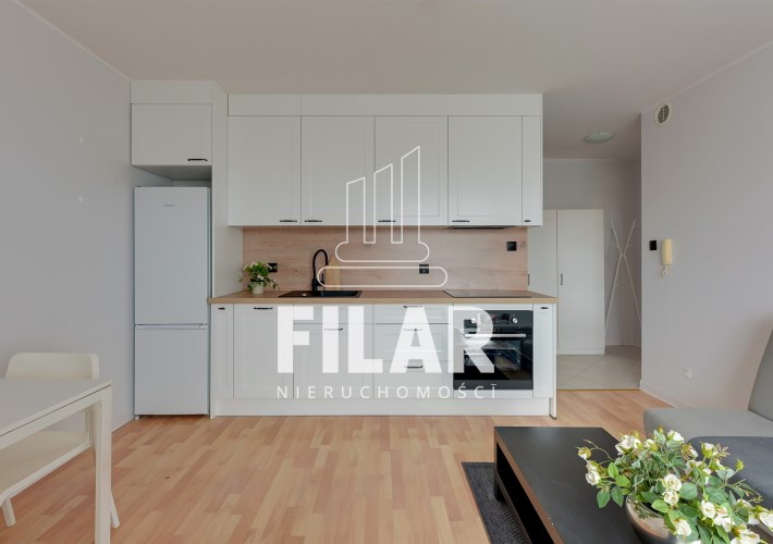 Słoneczne i funkcjonalne mieszkanie o powierzchni 35,12 mkw, zlokalizowane na drugim piętrze zadbanego budynku z wyjściem na balkon, to idealna propozycja dla osób szukających komfortowego lokum w nowoczesnym wydaniu. Wnętrze składa się z dwóch ustawnych pokoi, w tym przestronnego salonu połączonego z całkowicie nową, nigdy nieużywaną kuchnią, która stanowi serce domu. Aneks kuchenny został w pełni wyposażony w nową, elegancką białą zabudowę z drewnianym blatem oraz nowoczesne sprzęty AGD, takie jak lodówka, piekarnik, płyta grzewcza i okap. W części dziennej znajduje się wygodna sofa, stolik kawowy oraz kącik jadalniany, a duże przeszklenia zapewniają doskonałe doświetlenie wnętrza. Drugi pokój został zaaranżowany jako praktyczna sypialnia* lub gabinet, wyposażony w biurko, regał oraz komodę. Przedpokój z dużą szafą w zabudowie gwarantuje mnóstwo miejsca do przechowywania, a całość dopełnia klasyczna łazienka z wanną, pralką oraz estetycznymi płytkami w neutralnym kolorze. Mieszkanie wykończone jest w jasnej, spójnej kolorystyce z panelami o odcieniu naturalnego drewna, co nadaje mu przytulny charakter.