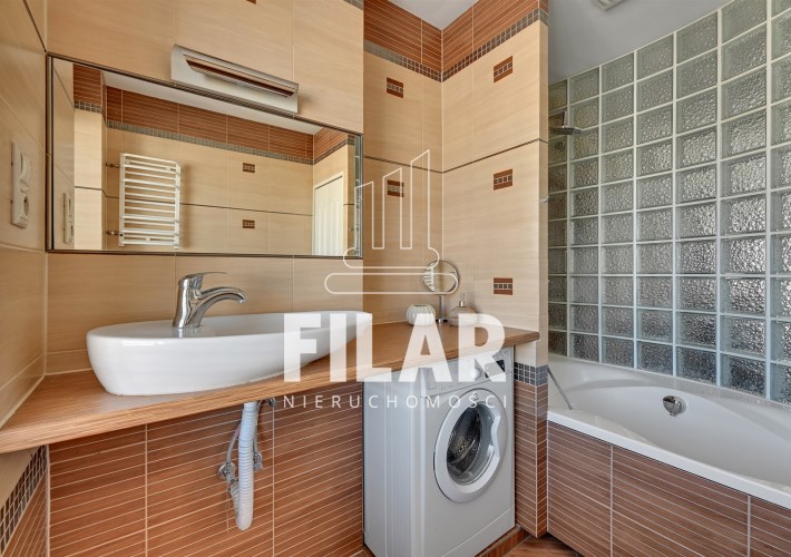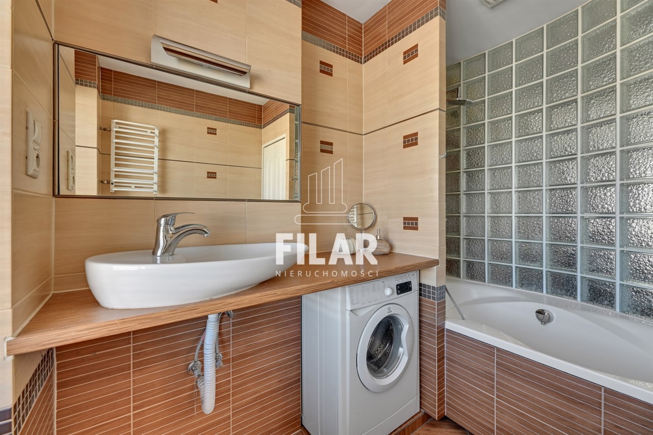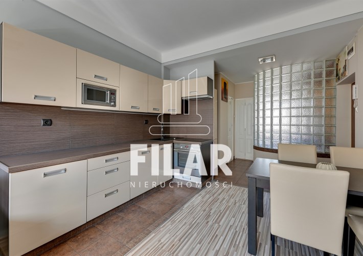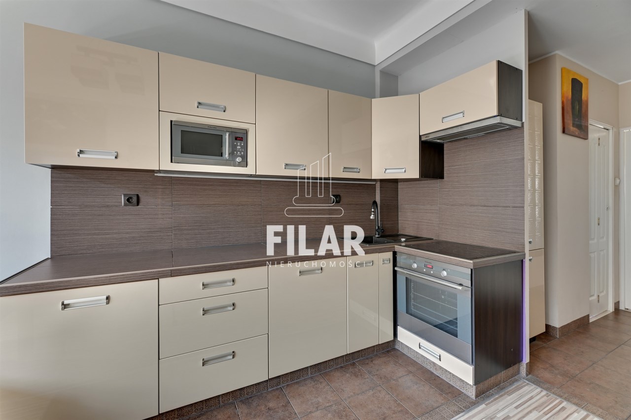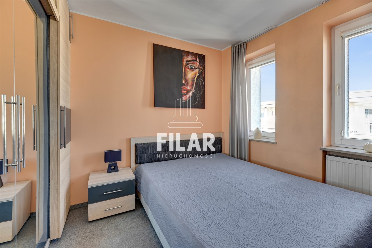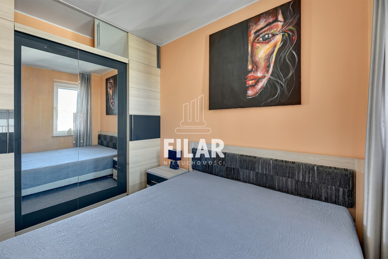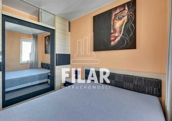 Mieszkanie o powierzchni 33 m2 składa się z przestronnego salonu z aneksem kuchennym, komfortowej sypialni, widnej, schludnie urządzonej łazienki oraz dużego balkonu. Jego wnętrze utrzymane jest w pastelowych, stonowanych barwach, które tworzą przytulną i harmonijną przestrzeń. Salon został wyposażony w stylowy zestaw meblowy, narożną kanapę z funkcją spania, stolik kawowy, stół jadalny oraz telewizor, co sprawia, że jest idealnym miejscem zarówno do odpoczynku, jak i spotkań towarzyskich. Aneks kuchenny wyposażono w niezbędny sprzęt AGD, w tym dużą lodówko-zamrażarkę, płytę indukcyjną, piekarnik, zmywarkę oraz mikrofalówkę, a także pełne zaplecze kuchenne. Przytulna sypialnia oferuje wygodne łóżko o szerokości 160 cm oraz pojemną szafę garderobianą, zapewniającą mnóstwo miejsca do przechowywania. W eleganckiej łazience znajduje się zarówno narożna wanna, jak i prysznic, a także pralka, co zapewnia wygodę użytkowania. Całość wnętrza została zaprojektowana w sposób przemyślany i estetyczny, co sprawia, że mieszkanie jest idealnym miejscem do życia.
