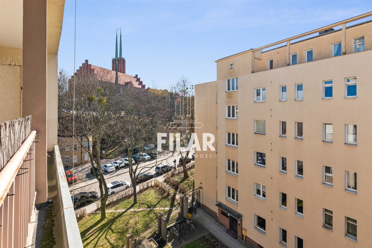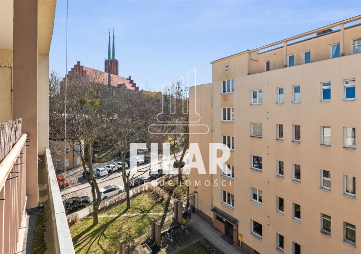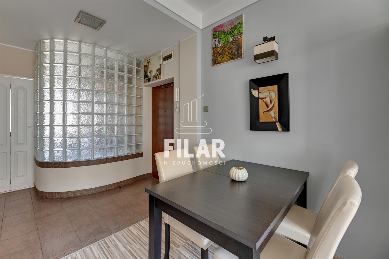 Zadbany budynek z 1980 znajduje się w zacisznej otoczce zieleni, tworzącej na osiedlu niewielkie, roślinne dziedzińce. Klatki schodowe zostały zabezpieczone domofonami, a wewnątrz funkcjonuje winda. Okolica jest spokojna, bezpieczna i odpowiednia dla osób szukających wyciszenia w lokalizacyjnym centrum metropolii.