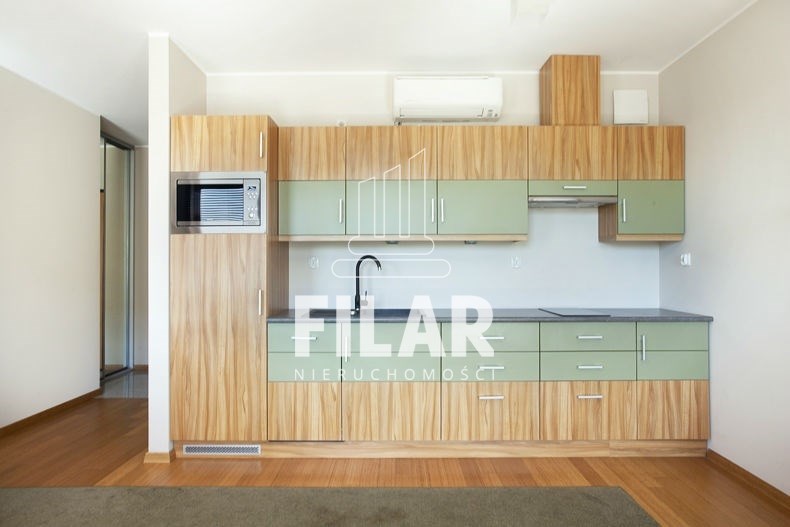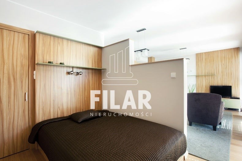 The property is located on the 4th floor and its area of 40 m2 includes: a room with a kitchenette and a separate bedroom area, a bathroom and a dressing room. The studio has been arranged in warm colours with elements of light wood. The heart of the flat is the leisure area, offering a stylish set of lounge furniture, a flat-screen TV in a functional wall unit. A fully equipped kitchenette in muted pastel colours will be the perfect place to fulfil culinary passions. An exceptionally practical solution has been used in the flat, separating the bedroom area from the living area, providing residents with a measure of intimacy. A large, stylish bed is set behind the wall, and right next to it is the entrance to the spacious dressing room. The bathroom, bathed in beige, offers a walk-in shower cubicle, a toilet and built-in furniture including a washbasin. The flat will be the perfect compromise between the pragmatic perks of the city and the soothing proximity to nature offered by the immediate vicinity of the sea.