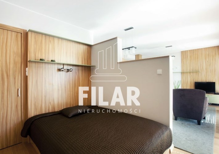 Nieruchomość znajduje się na 4 piętrze, a swoją powierzchnią 40 m2 obejmuje: pokój z aneksem kuchennym i wydzieloną częścią sypialnianą, łazienkę oraz garderobę. Kawalerka została zaaranżowana w ciepłych barwach z elementami jasnego drewna. Serce mieszkania to część rekreacyjna, oferująca stylowy zestaw mebli wypoczynkowych oraz płaski telewizor w funkcjonalnej meblościance. W pełni wyposażony aneks kuchenny w stonowanych, pastelowych kolorach będzie doskonałym miejscem do spełniania pasji kulinarnych. W mieszkaniu zastosowano wyjątkowo praktyczne rozwiązanie, oddzielając część sypialnianą od dziennej, zapewniając mieszkańcom dozę intymności. Za ścianką ustawiono duże, stylowe łóżko, a zaraz przy nim znajduje się wejście do przestronnej garderoby. Łazienka skąpana w beżach oferuje kabinę prysznicową typu walk in, toaletę oraz zabudowę meblową wraz z umywalką. Apartament będzie doskonałym kompromisem pomiędzy pragmatycznymi atutami miasta a kojącą bliskością natury, którą oferuje bezpośrednie sąsiedztwo morza.