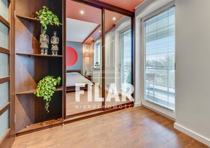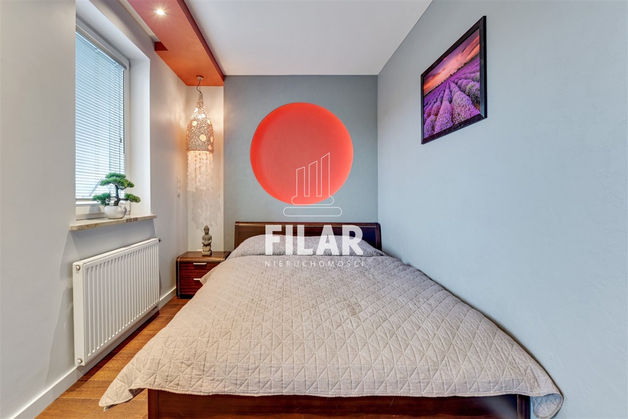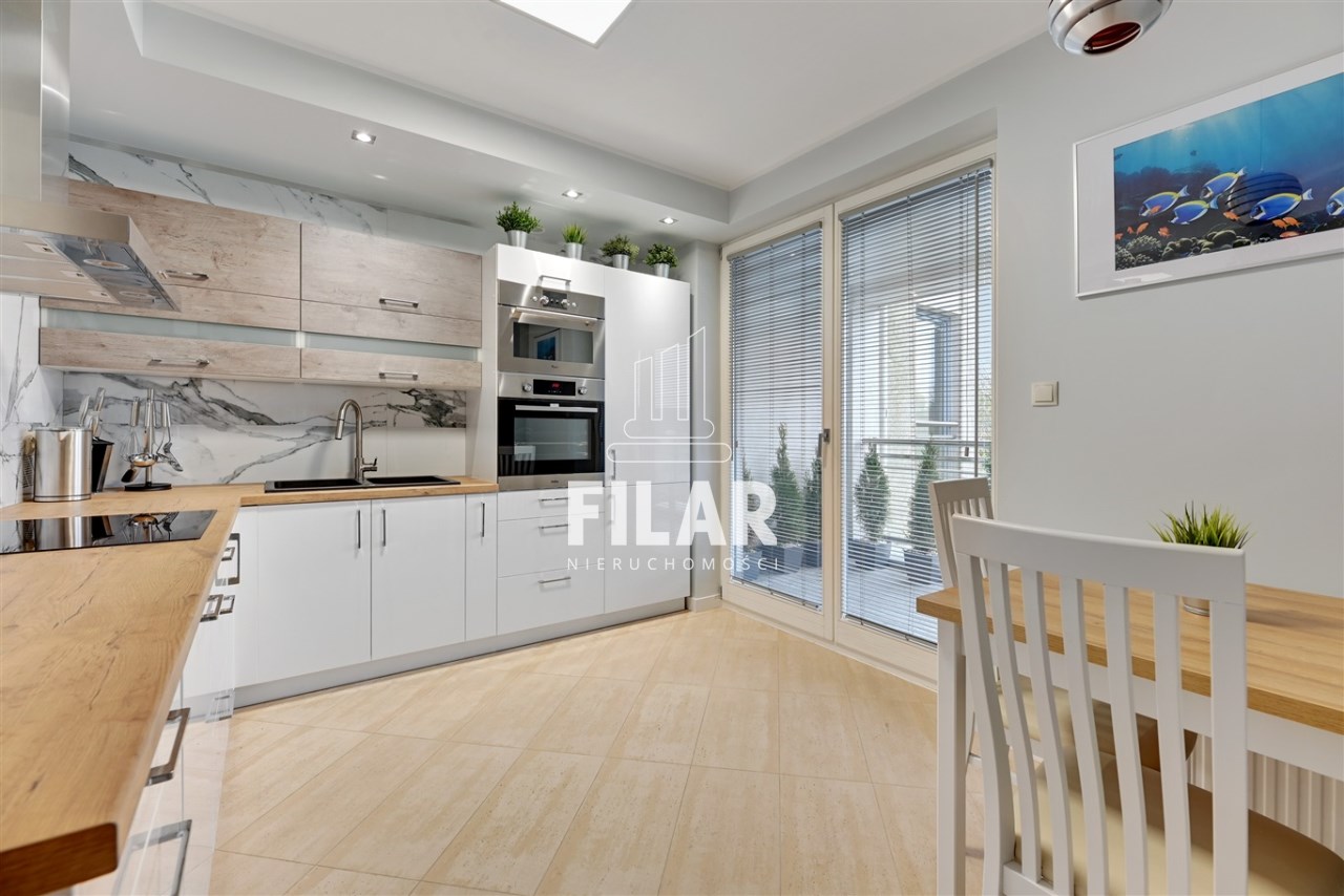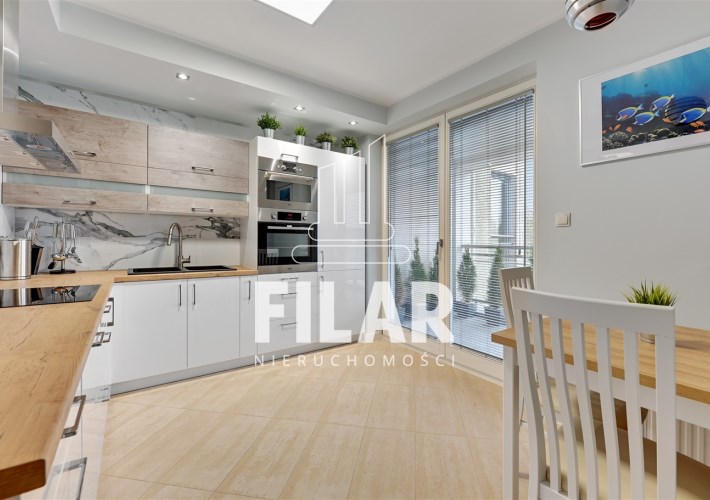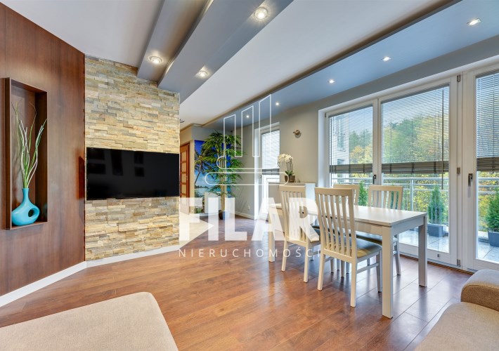 The apartment with an area of approx. 80 m2 consists of a living room, two bedrooms, separate kitchen, bathroom and two spacious balconies. Large bathroom with tub and shower. All rooms are fully furnished and equipped. The apartment is distinguished by its peace and quiet, which create a very intimate atmosphere. The price includes a parking space in the garage and a large basement with a window.
