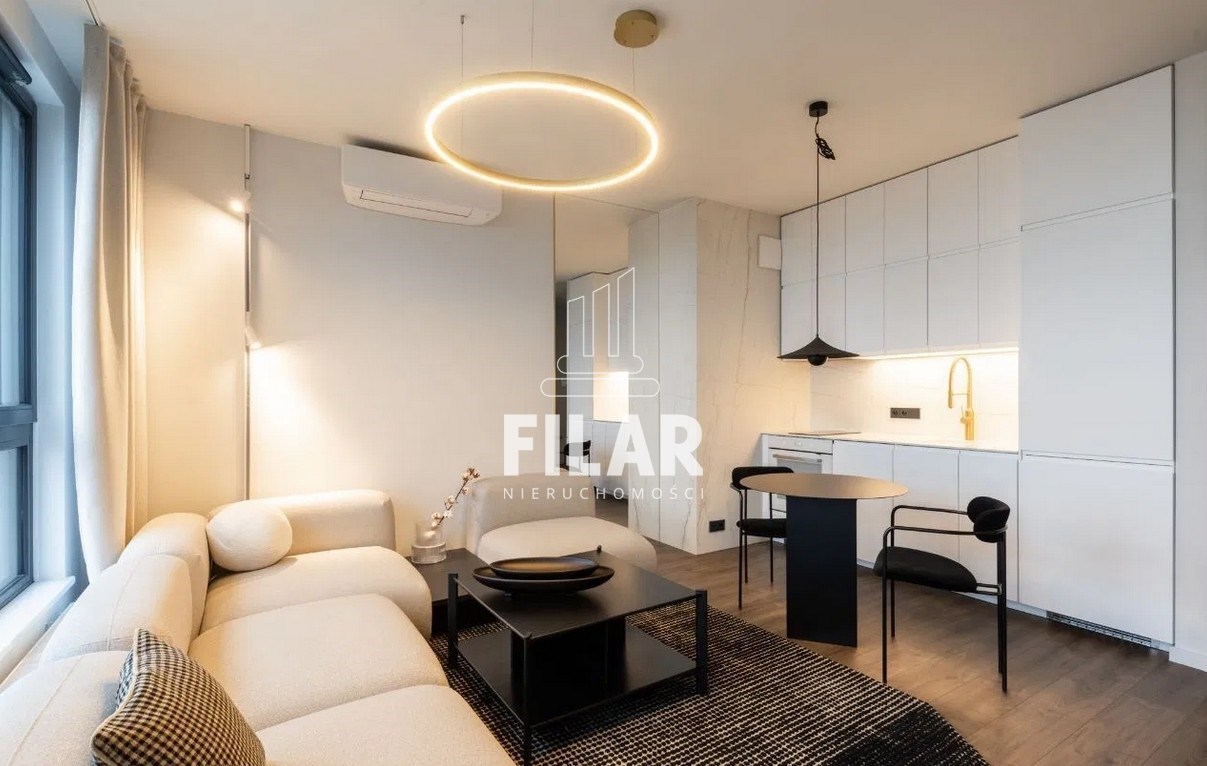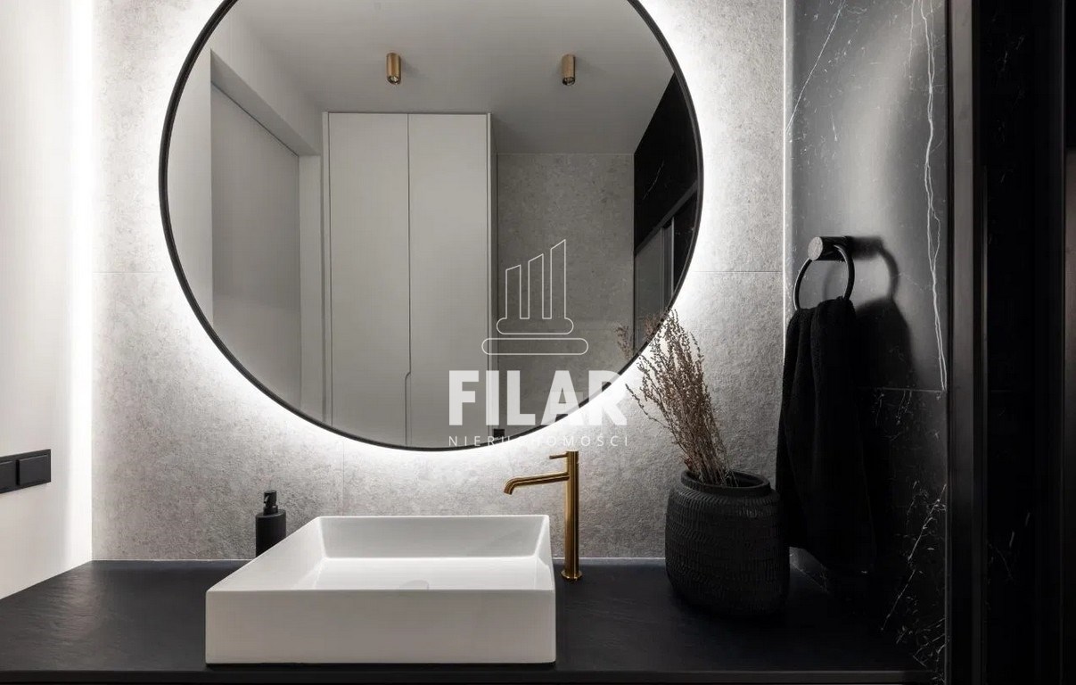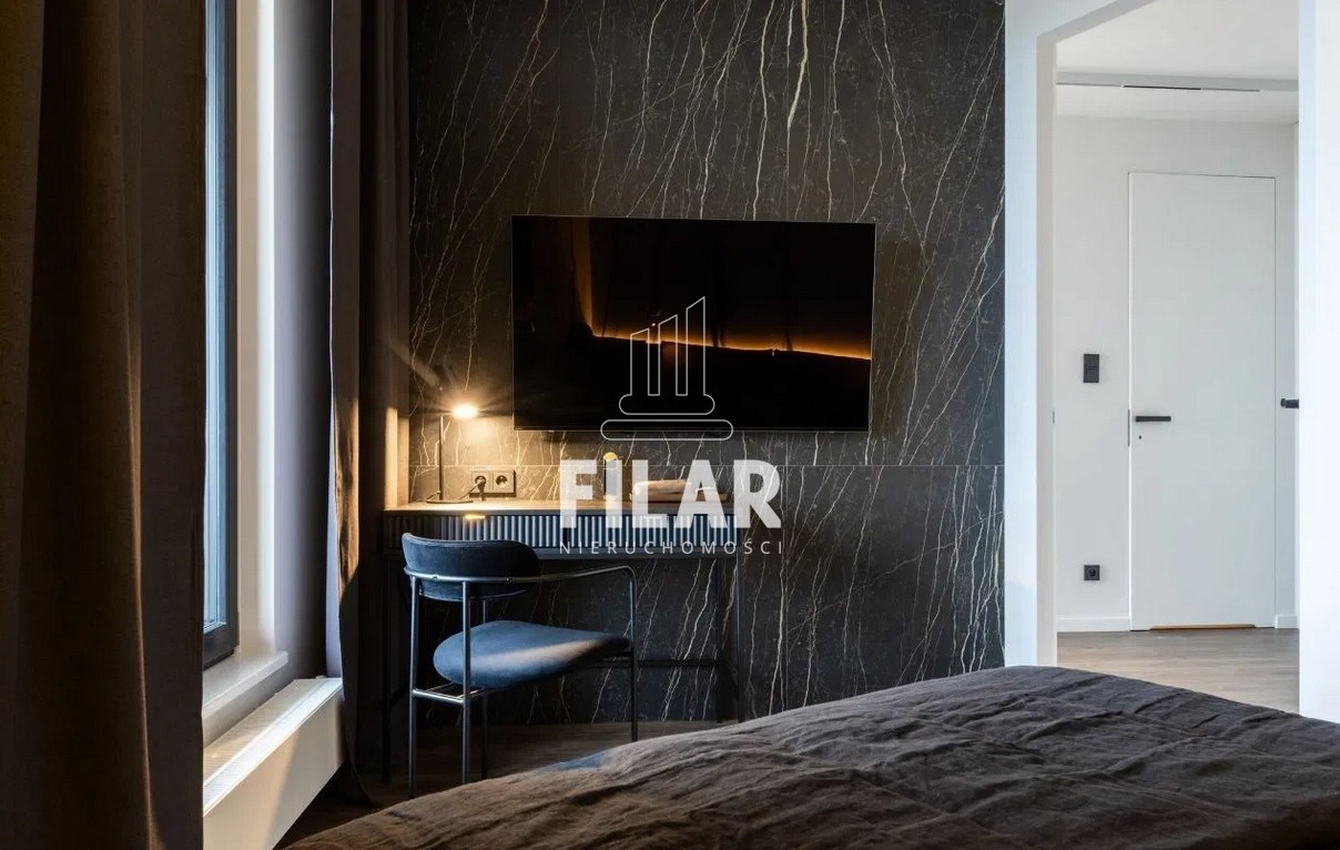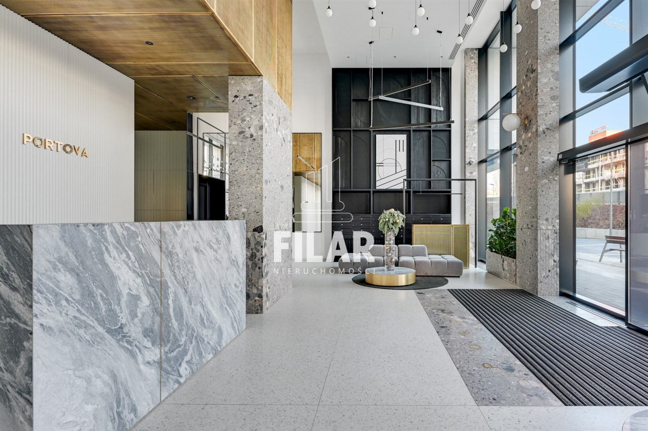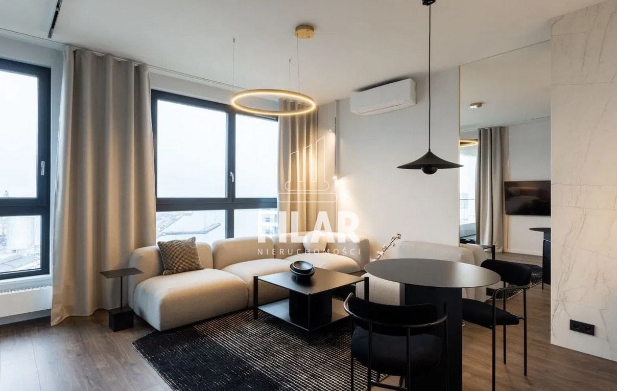 To wyjątkowe, nowo wykończone mieszkanie o powierzchni 45 m², zlokalizowane na prestiżowym 17. piętrze apartamentowca „Portova” w samym sercu Gdyni, czeka na swojego pierwszego najemcę. Wnętrze zachwyca nowoczesnym designem i ogromną ilością naturalnego światła wpadającego przez wysokie okna, z których roztacza się niepowtarzalny widok na morze i port. Sercem apartamentu jest stylowy salon z aneksem kuchennym, wyposażony w nową białą zabudowę, wysokiej klasy sprzęt AGD oraz klimatyzację zapewniającą komfort o każdej porze roku. Część wypoczynkową zdobi minimalistyczna sofa i designerskie oświetlenie, a przylegający przestronny balkon pozwala w pełni cieszyć się nadmorską panoramą. Przytulna sypialnia oferuje wygodne dwuosobowe łóżko z efektownie podświetloną ścianą o strukturze marmuru, szafę oraz funkcjonalne miejsce do pracy z biurkiem i telewizorem. Całości dopełnia luksusowa łazienka utrzymana w eleganckiej, ciemnej kolorystyce z marmurowymi akcentami, wyposażona w nowoczesną kabinę prysznicową typu walk-in oraz stylową armaturę w kolorze złota. Mieszkanie jest w pełni umeblowane i gotowe do wprowadzenia, łącząc najwyższy standard wykończenia z wyjątkową funkcjonalnością w ekskluzywnej lokalizacji.